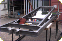 Please note that the full Chairman’s reports from the newsbriefs can be downloaded by clicking on the respective Date Heading. The downloads are in the pdf format.August 2014.•Pointing of the top layer of bricks of the turntable pit has been completed and the last few yards of track between the end of the spur and the turntable has been laid. The area between the container/loco shed and the turntable has been concreted and a piece of removable track constructed that bridges the gap between the turntable and any one of the three tracks in the container/shed.March 2014.•The turn table is virtually complete, with only the railings to paint in top coat and a small amount of pointing remaining.December 2013.•The turntable has now been fully installed complete with its hydraulic lifting pump. The table has been successfully raised to full height using a hand operated lever. The whole of the turn table pit has been covered over with aluminium chequer plate.August 2013.•The turntable is now installed in its pit and painted. The ring on which it rotates was rolled by ourselves and bolted to the concrete floor by ragbolts.March 2013.•The turntable is now well advanced with the construction coming together reasonably quickly. The rotating/elevating structure is totally complete. The turntable pit has been bricked up and back filled to the height of the top of the breeze blocks.December 2012.•The base of the pit for the turntable has been concreted and is now ready for the walls to be built. All the steel, rams, bearings, wheels, building materials etc. have been purchased and a lot of fabrication work, particularly on the lower base section, has been started.August 2012.•Grass seeding has now been completed in the remaining area of the new loop extension and is by now well established.•There has been limited physical progress to report on the proposed turntable, except for a very large excavation were the turntable is to be constructed.•The track repairs in the vicinity of the catenary at the approach to the 1 in 22 grade, have been completed.March 2012.•Chippings have now been spread throughout the length of the new loop and all that remains to be done is seeding of the top soil.•There is no progress to report on the turntable project due to other priorities.•Trackwork still needs to be attended to in the area of the catenary to the 1 in 22 gradient.December 2011.•It was reported that the extended loop project was now complete. Further landscaping had been carried out, mainly levelling areas ready for seeding.•Construction of the turn table, outside the proposed loco shed, has commenced with excavation work complete Details of the actual mechanics of the turntable have still to be finalised.•A number of concrete slabs have been laid under the track, where it starts to rise up the gradient, in order to correct the undulations in the track.August 2011.•Work on the extended loop continues and is now getting close to completion. There is only the topsoil to spread on one side of the cutting, the placing of track ballast and the sowing of grass seed.March 2011.•Most of the hard landscaping of the track extension is now complete. The flagstone edging of the outer radius is finished and the new HALT platform has been built. Landscaping needs to be completed prior to sowing the area with grass seed and finally putting in the track ballast.December 2010.•Landscaping of the new extension continues with edging stones along the whole length of the inner radius installed and a start made on edging the outer radius.